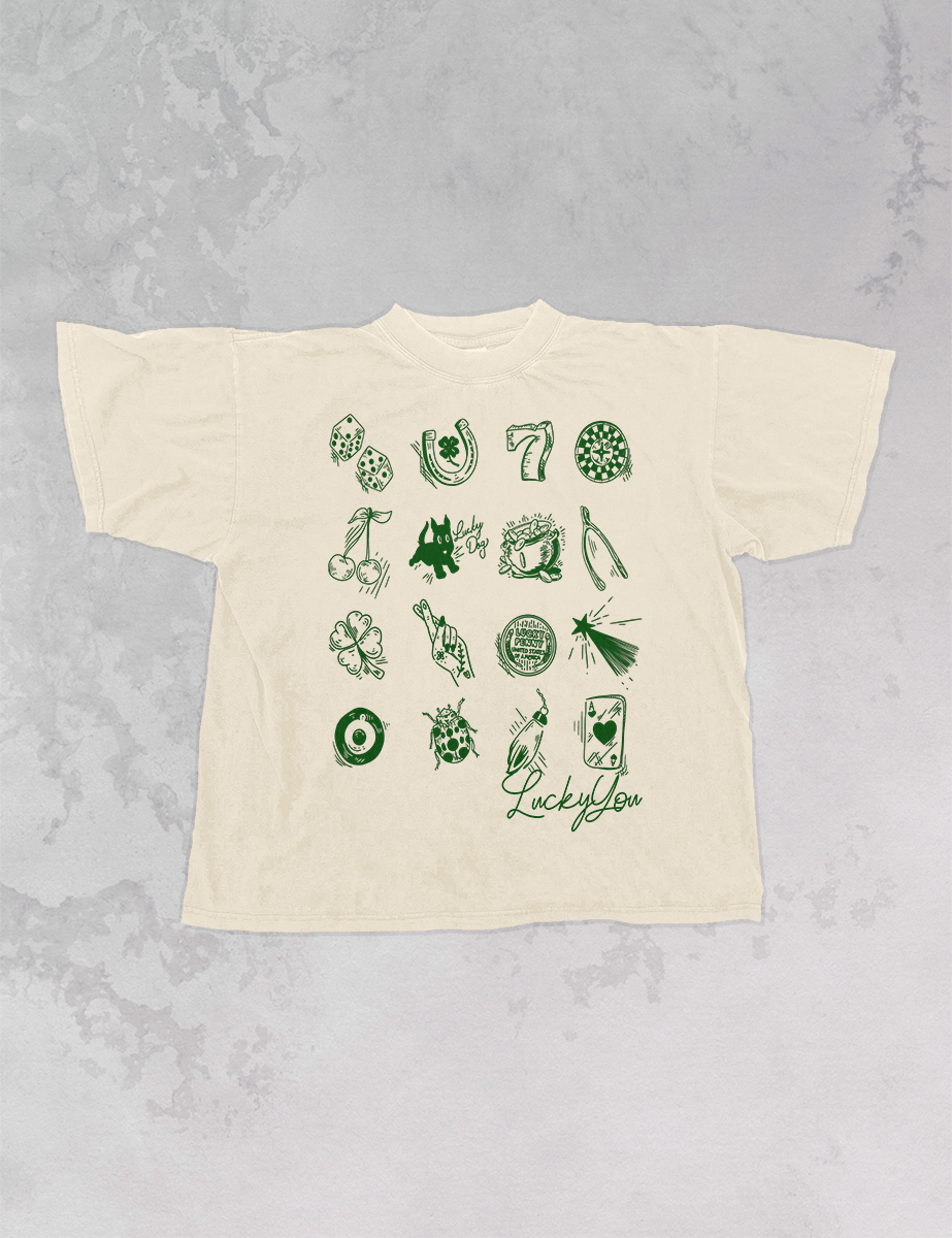 Get into the St Patricks Day spirit in this Lucky vintage wash oversized tee!